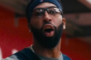 视频当中,浓眉戴着护目镜底角三分一发入魂,场边的欧文搞怪互动。