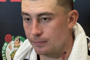 当记者问及他颈部有血痕时,普理查德表示:“训练营里的对抗像打仗一样。”