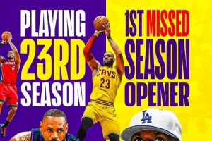 缺席生涯第23次揭幕战!詹姆斯此前22次场均可揽25.2分8.1板5.7助